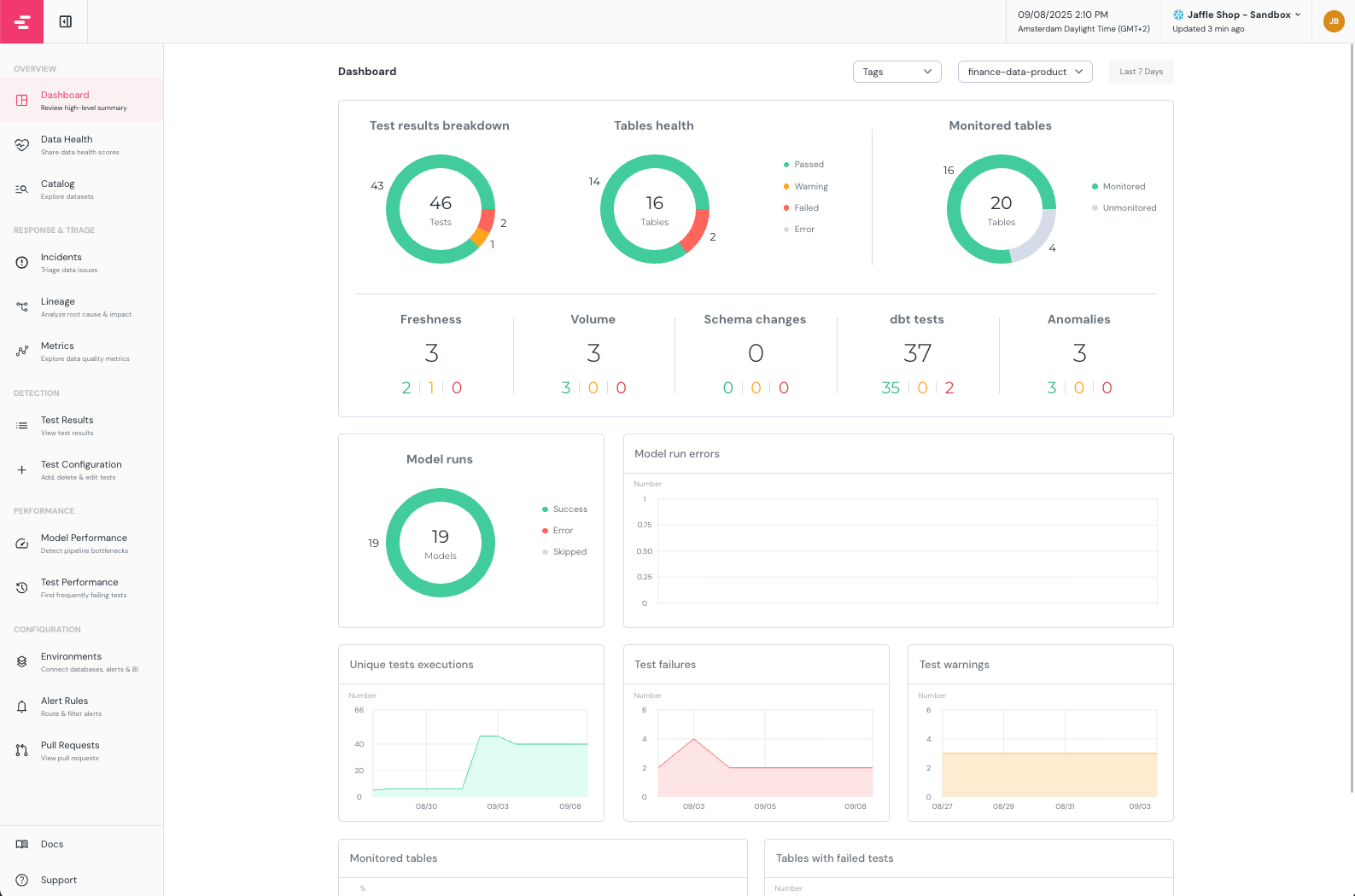 For data producers, we can easily understand the current state of our tables and tests in the executive dashboard