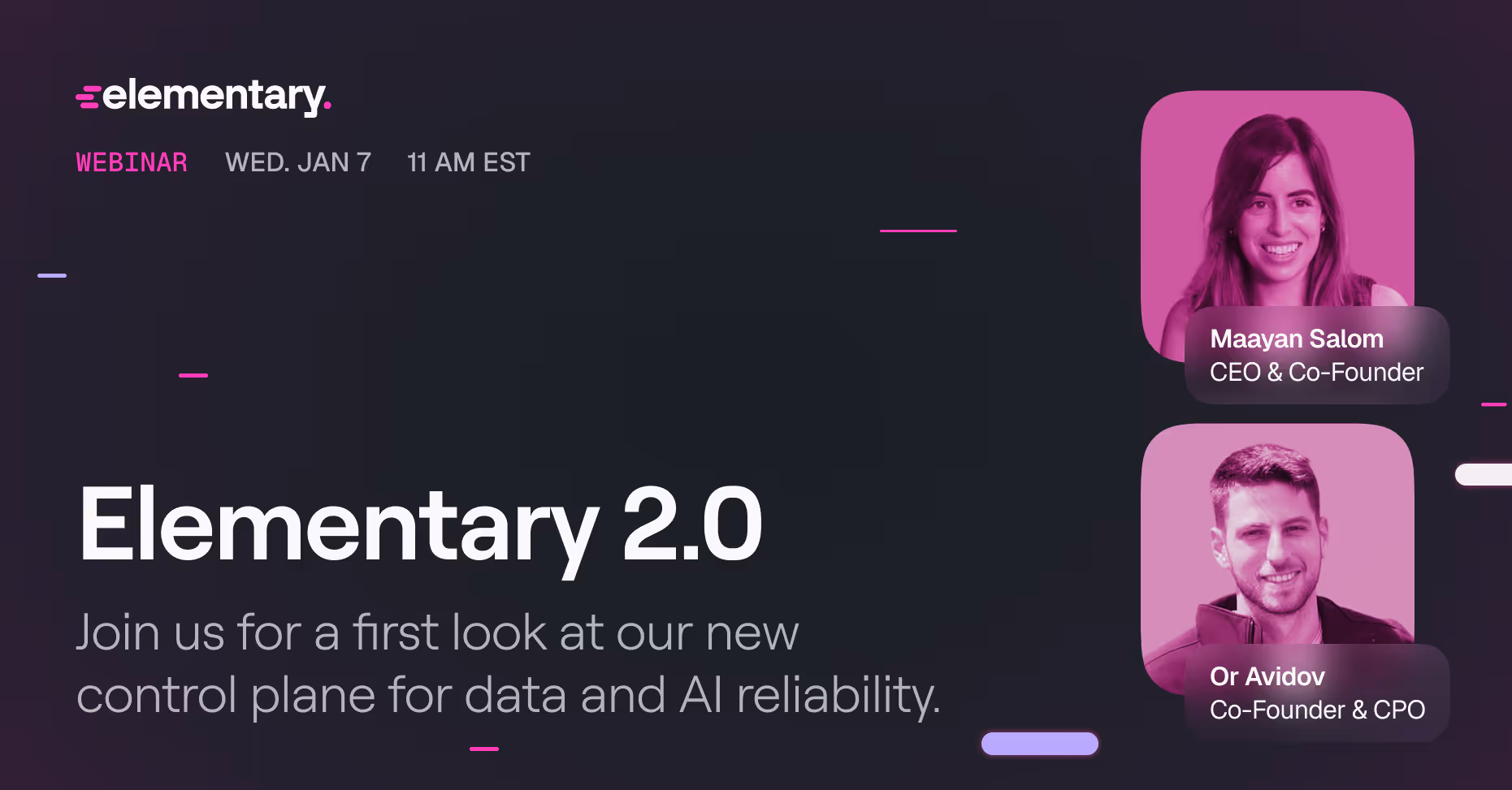 Join us for a first look at Elementary 2.0, our new control plane for data and AI reliability.